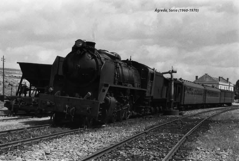 Locomotora a vapor repostando en la aguada,