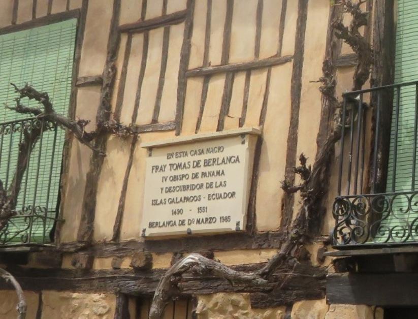 Casa donde nació Fray Tomás de Berlanga, detalle de la placa,