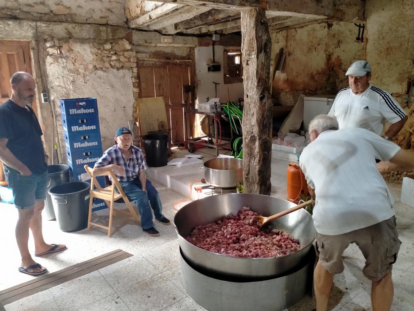 Removiendo la carne,