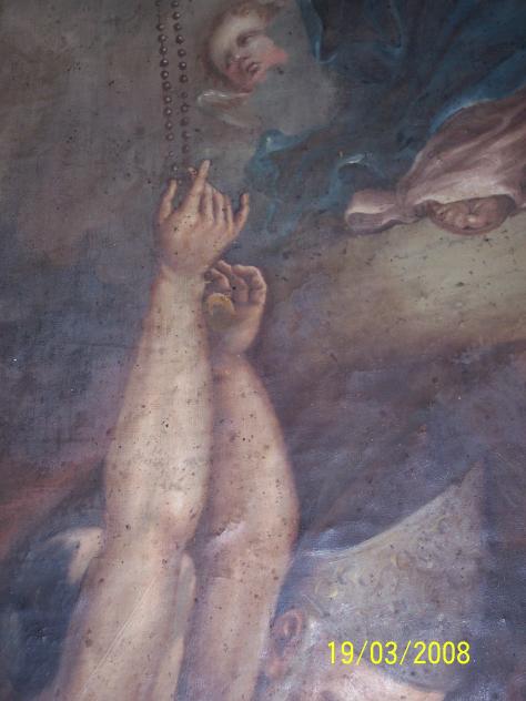Hay en la iglesia de Deza un nicho capilla dedicado a las ánimas del purgatorio, representadas por una pintura en la que nos muestra el autor a Nuestra Señora del Rosario, arriba en el cielo, sentada en su trono. Y debajo de ella, en un plano inferior y sin ninguna separación, el purgatorio en donde se ven varios personajes con cara de sufrimiento y envueltas en llamas purificadoras. De arriba abajo pende el rosario de la mano de la Virgen que servirá de alivio y esperanza a sus penas.