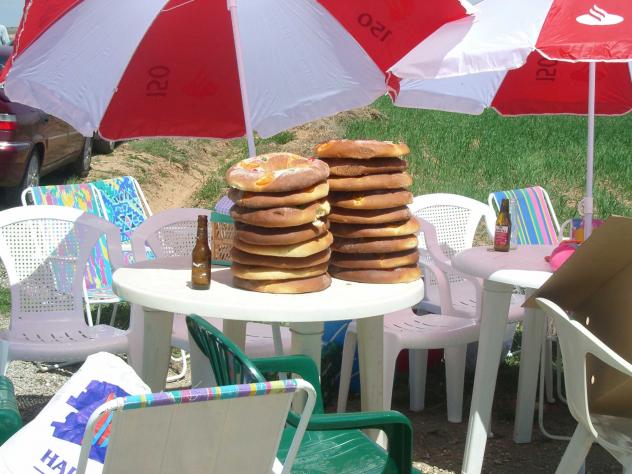 Una docena y media de rollos, son muchos rollos. Y más si son de San Roque. A estas horas de la mañana nos vendría bien tener alguno al alcance de la mano y pegarle un buen pellizco para desayunar.