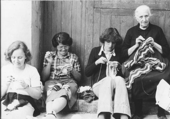 bonita estanpa las chicas cosiendo en la puesta de casa Buenas tardes Victoria: Acabo de comer y ahora buscaré una peliculilla para pasar la tarde. Esta mañana ha estado con niebla y lloviendo de vez en cuando. No recuerdo yo haber visto lluvia con la niebla. No te acostarás sin saber una cosa más. Lo que si he visto ha sido nevar y tronar. Y tronar en todos los meses del año, también. O sea que no es pre-rogativa del verano, como creen muchos.