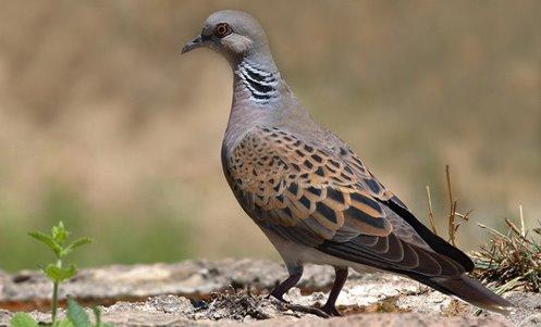 El vuelo de la tórtola europea es muy acrobático, realiza fuertes aleteos seguidos de pequeños planeos, no demasiado lejos del suelo. Puede adquirir... En la imagen de la cabeza se puede observar la mancha ocular roja y la gran mancha negra y blanca que presenta en el cuello la tórtola de nuestros bosques y lo que precisamente la hace diferente de la turca. La turca o de collar, tiene una franja alrededor de todo el cuello. Hay otra diferencia esencial como es que la tórtola común es muy espantadiza y apenas se deja ver y la turca se pasea entre nuestros pies, buscando la comida del suelo.