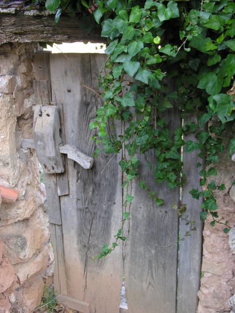 Cuando era chiquitilla una vez se me ocurrio acercarme a un ciruelo de claudias que son mi debilidad, y "zás", me pillarón desde peñaflasco se ve todo el pueblo y ojo avizor, el paisano me estaba observando y no perdia detalle de lo que hacía. Ande total que para lo que le sirvio, pues todas las ciruelas me las llevaba al cinto.... Curioso el cerrojo y curiosa la mata verde que asoma mansamente en la entrada de la puerta.