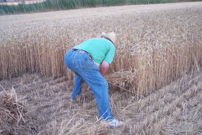 José, como cada año es el primero que está dispuesto a darnos lecciones de la siega. Él era y sigue siendo un gan segador de hoz.