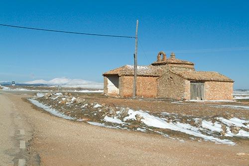 Estamos viendo la ermita de San Roque, en Deza y la casilla que hizo el tio Raimundo. Han venido días de muchísimo frio a finales de febrero, en los cuales, tan solo ha caído una pequeña nevada como se puede apreciar, tan pequeña que ni siquiera ha cubierto el suelo. Esta tarde, está soleada, con un cielo azul y una claridad que deja ver allá a lo lejos, el Moncayo todo cubierto de nieve. El paisaje desierto como es habitual...Un abrazo.