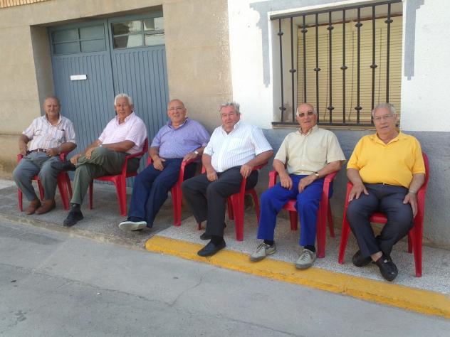 Crescenciano Esteban Lafuente (a la derecha de amarillo) tomando la fresca en la