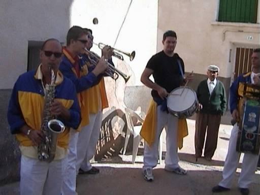 Besos a todos y a las "Pilis" del Cuenco. Charanga amenizando el Corrillo, en el pasacalles del día de la Fiesta Mayor, 14 de septiembre. Vemos a Benito tan tieso, allá en lo que fue su barrio. Saludos dezanos.