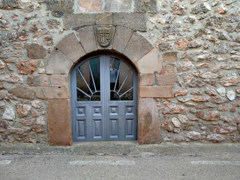 Puerta en arco con escudo,