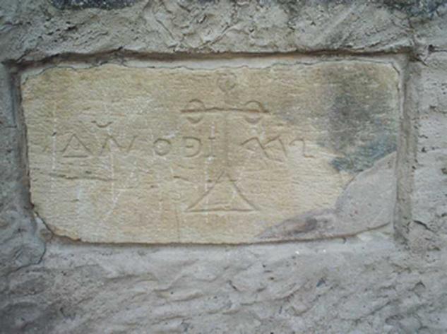 Piedra con fecha detras de los columpios,