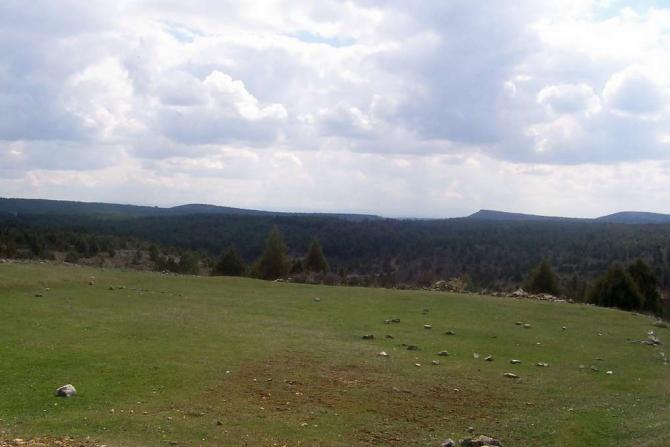 Vista de campo y pinar,
