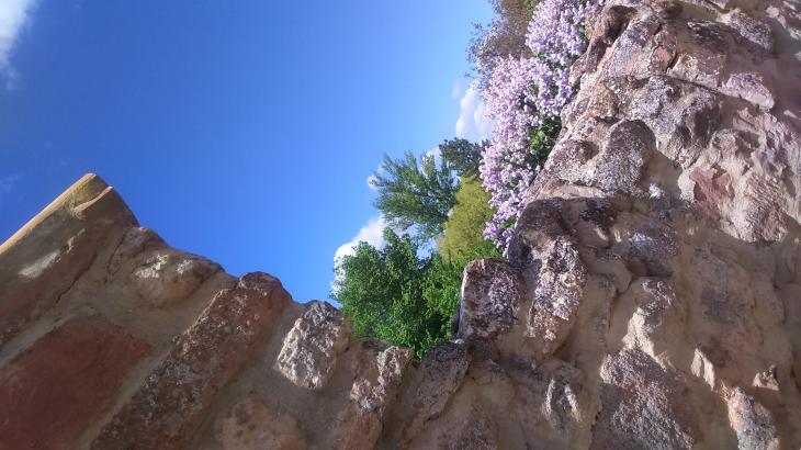 Desde mi ventana, lilas en flor, entre piedras y arbustos, junto a la calle Real,