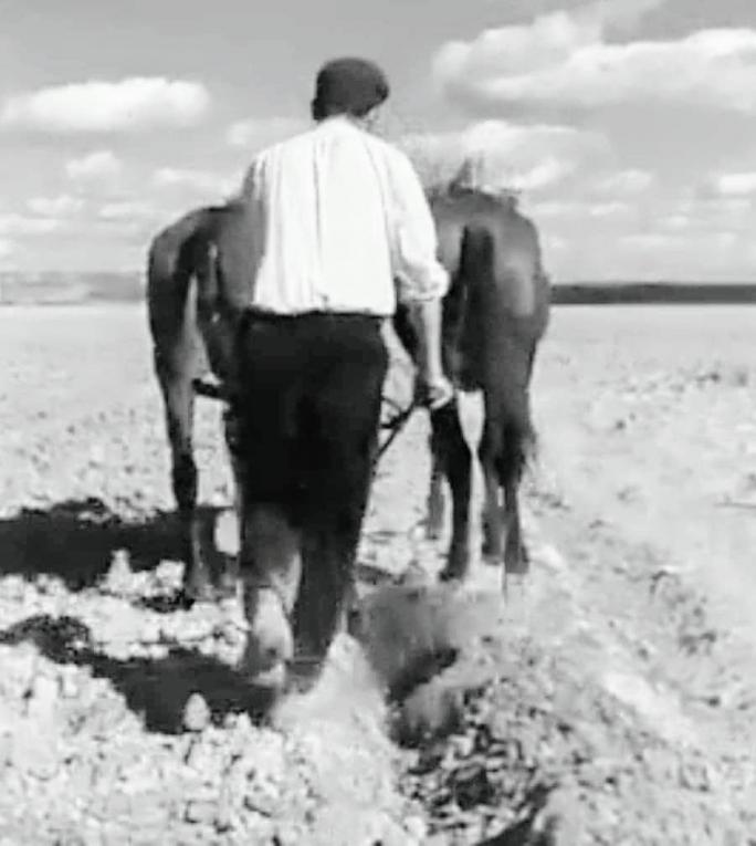 Un día en el campo, arando,