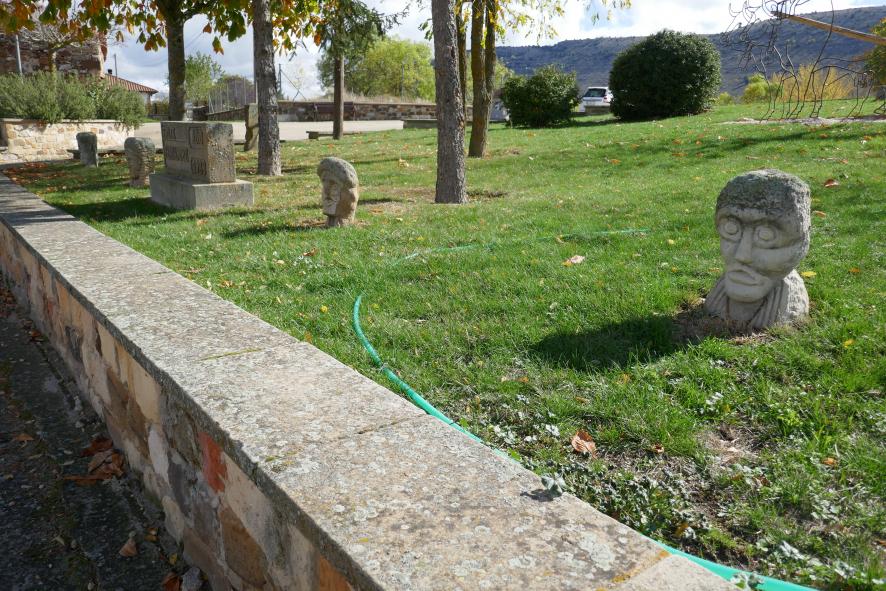 Parque con esculturas en el centro,