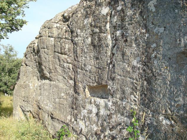 la parte que presenta los grabados esta orientada al norte por lo que los vientos y las precipitaciones van deteriorando la superficie labrada.