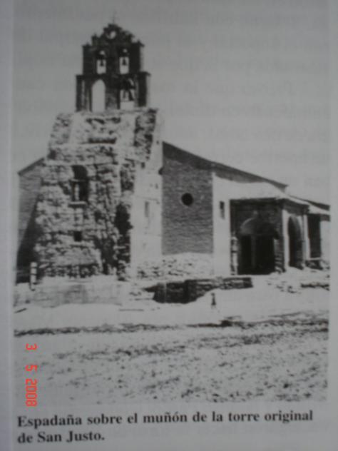 La torre de San Justo debió ser imponente. Quizás era una torre de estilo mudéjar de las tanto abunda en nuestra tierra. Yo recuerdo haber visto de niño un foto con todos los escombros extendidos por el campo de la izquierda y que llegaban casi hasta las zarzas. A ver si alguien pudiera rescatar esa foto.