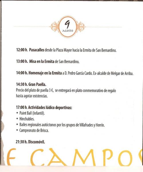 Programa para el día 9 de agosto del año 2.009
