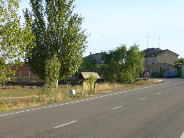 Cartel de información y águila en el tejadillo,