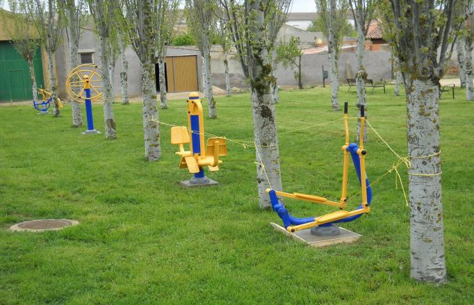 Han terminado hace un momento de colocar las máquinas para hacer gimnasia, aún sujetas con cuerdas, pero ya están ahí. Aprovecharos para hacer