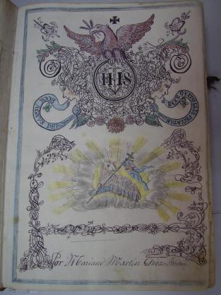 . Vemos como el sacerdote de turno, muestra su habilidad como dibujante con esta caratula de un libro Sacramental que, comienza en el año del Señor de 1694.