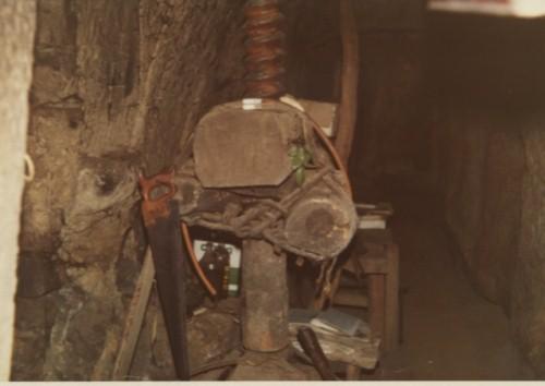 Husillo de madera, hecho a mano .Tanto la rosca como la tuerca ( en la misma biga de lagar) eran hechas a mano.Sin torno.