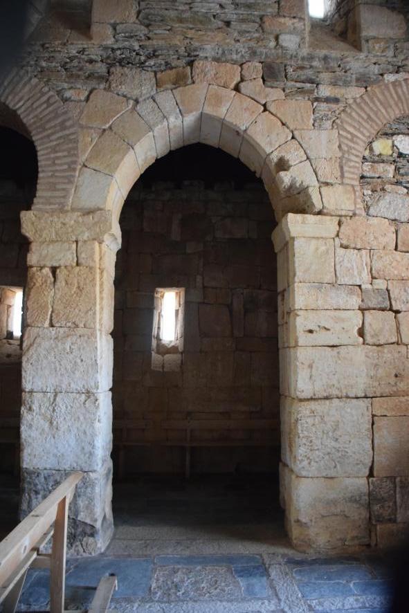 Arco de piedra arenisca con forma apuntada. Igelsia de San Pedro de la Nave,