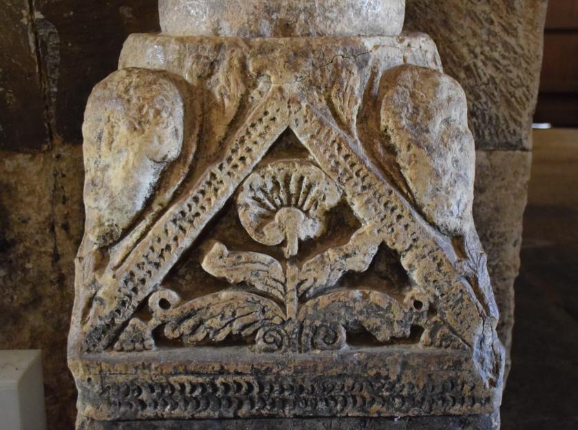Detalle de una basa ricamente labrada de la iglesia de San Pedro,