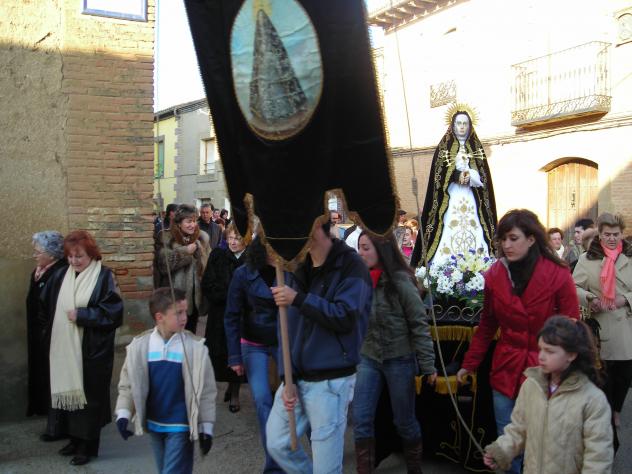 a la dolorosa la acompañan las jòvenes que en vez de llevarla a hombros tiran de una carroza que es mas facil de llevar