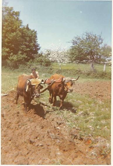 Ángel Alvarez, hermano de Ricardo, arando la huerta, década de los 70 Esta labor de arar la tierra con tracción animal pasa ya a la historia, en este otoño del 2006 las tres ultimas bacas que existían en La Tejera las venden, pastando en el termino, vacunos de otros pueblos, donde se crían exquisitos terneros. Una de las vacas se llamaba Peinada (la de la coberteira) y la otra Gallarda y el que está arando se llama Lito que soy yo.