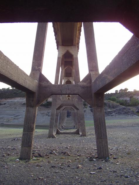 Junto a los pilares del puente largo,
