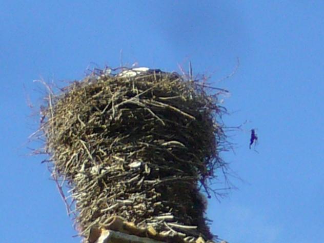 Más vale que la cigüeña no vuelva a hacer el nido en el mismo sitio, porque tiene que pesar un montón y se volverá a estropear el tejado