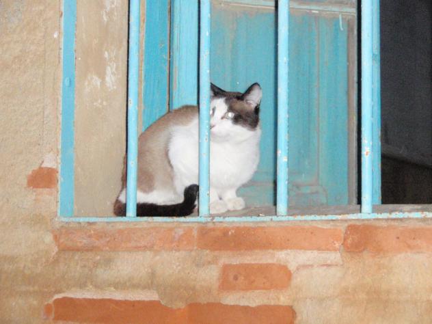El gato de Nieve en la ventana azul,