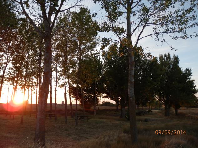 puesta de sol entre los árboles de la fuente,
