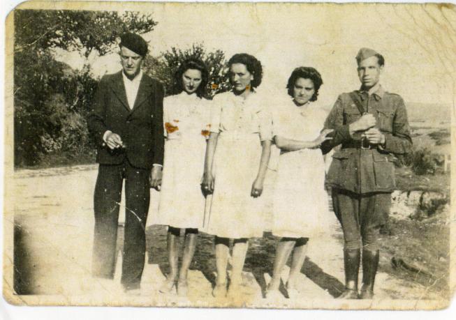 he enseñado esta foto a mi madre Lisa, que vivía por aquel entonces junto a tus abuelos. Simplemente para comentarte que según ella la chica que está al lado de Julian es su hermana Paulina. Hola Carmina comoves estas en locierto la que esta con mitia Adela es mi madre Cicilia y el militar es el marido de mi tia Adela y la otra que esta con mi tio Julian no se gracias por el interes en abrazo Angel, siempre fui vecina de tus abuelos, soy hija de Patro seguro que te acuerdas de nosotros. La señora que esta al lado del militar debe ser tu tía Adela las otras dos ¿quienes son? y el de la gorra ¿es tu tío Julian?. Un saludo. Nos gustara mucho saludarte si vienes por aqui.