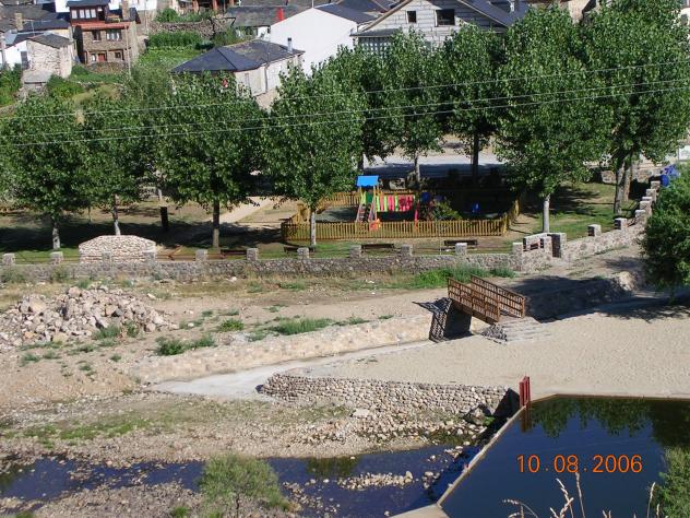 Puente madera y parque,