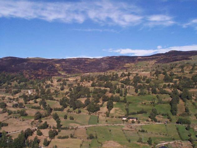 Vista de las montañas de la Lamela quemadas,