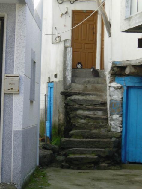 Pareja de gatos a la puerta,