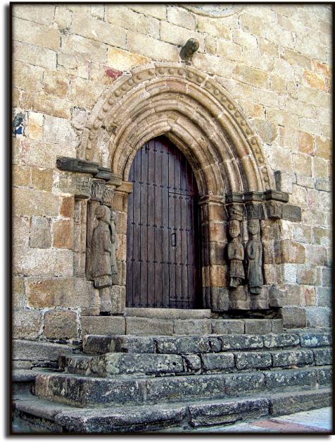 puerta muestran decoraciones de tipo vegetal y el tema bíblico de Adán y Eva tentados por la serpiente. En los fustes aparecen figuras humanas adosadas ataviadas con el atuendo de la época.