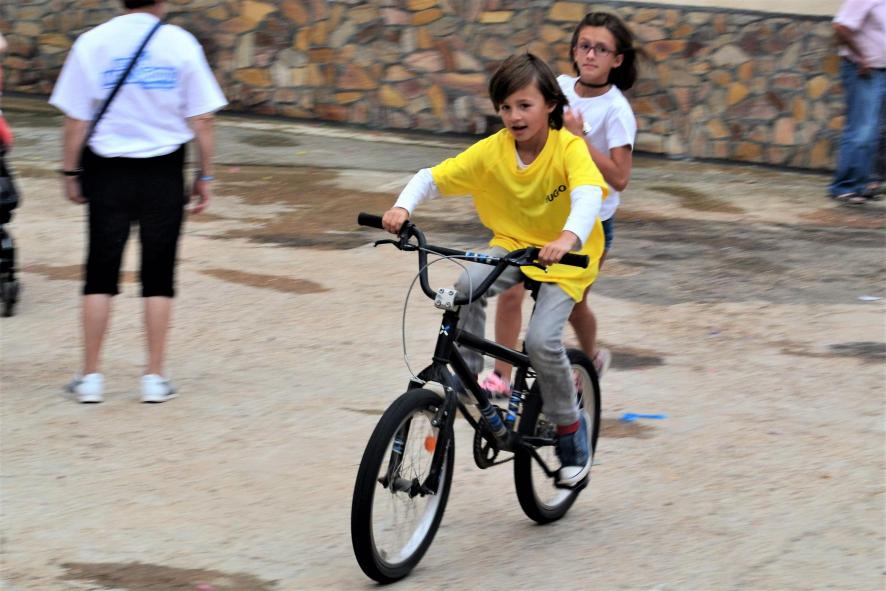 on bike,