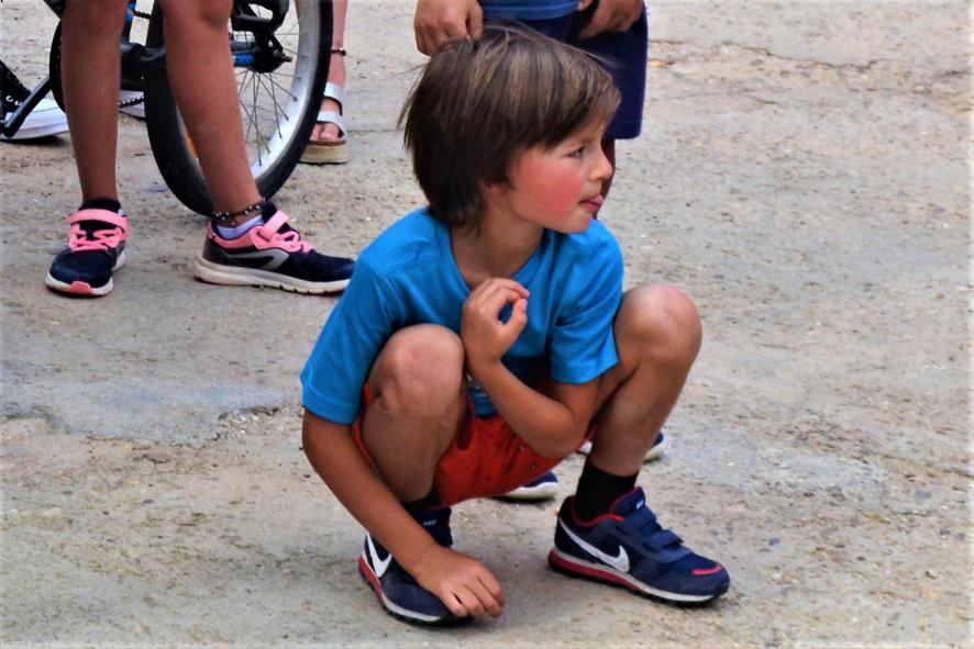 en cuclillas,