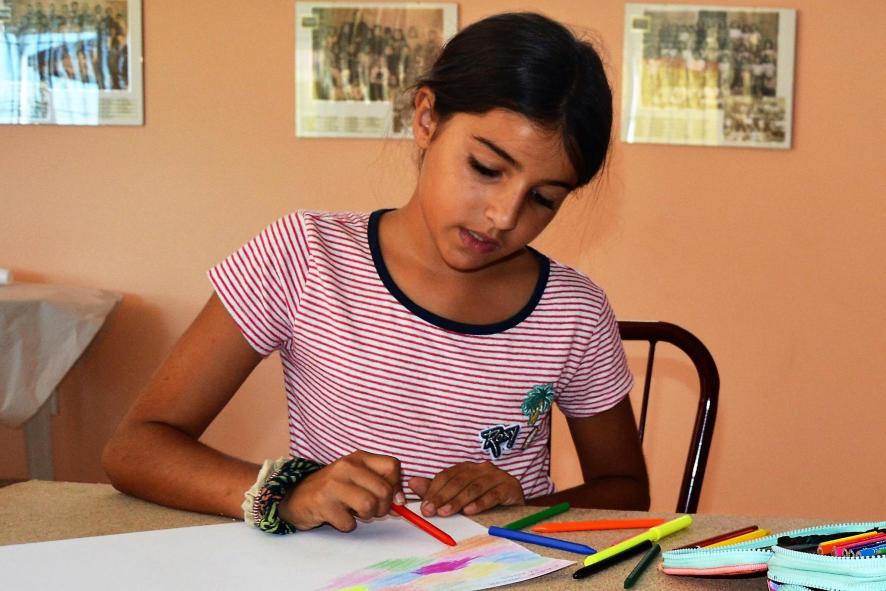 con sus pinturas de cera,