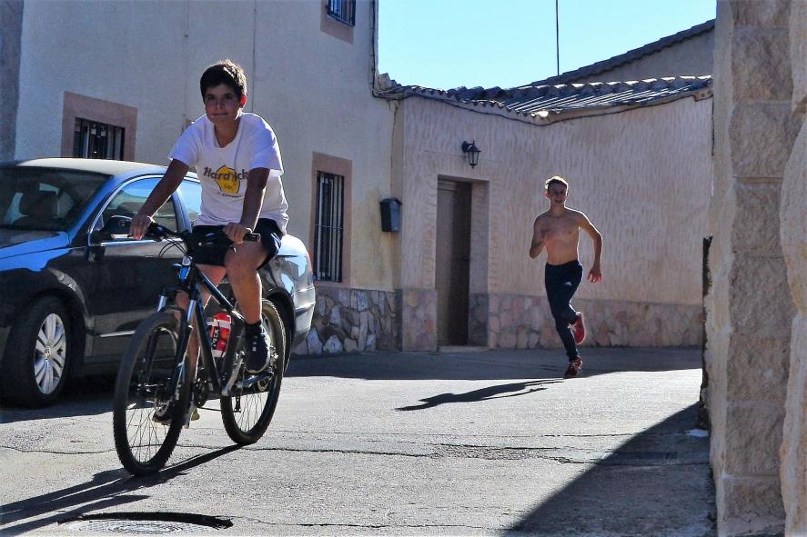 a pie y en bici,