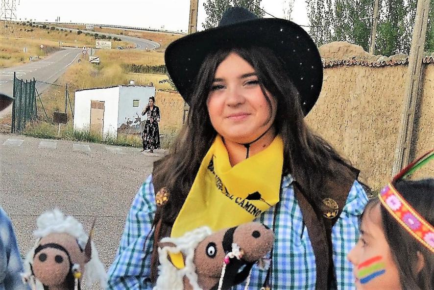 con su sombrero vaquero,