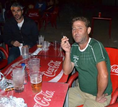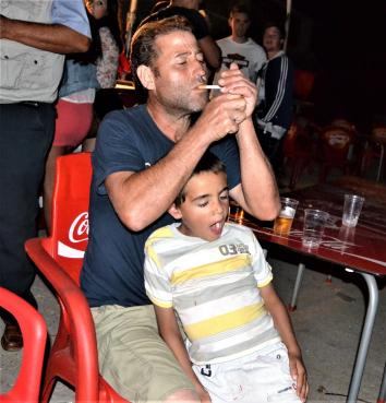 con el pitillo entre los dedos,