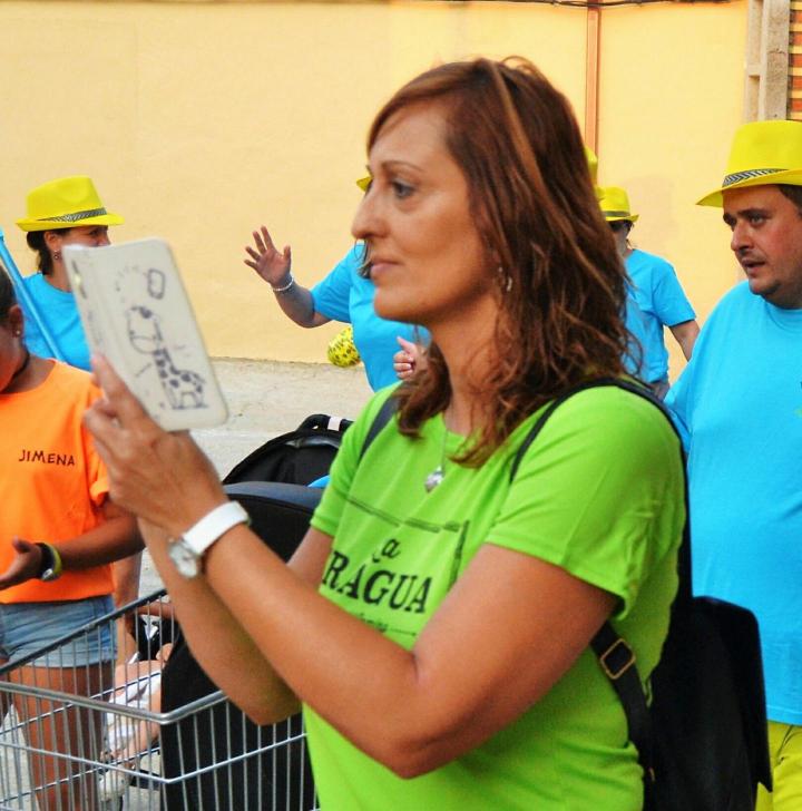 de verde con su móvil,