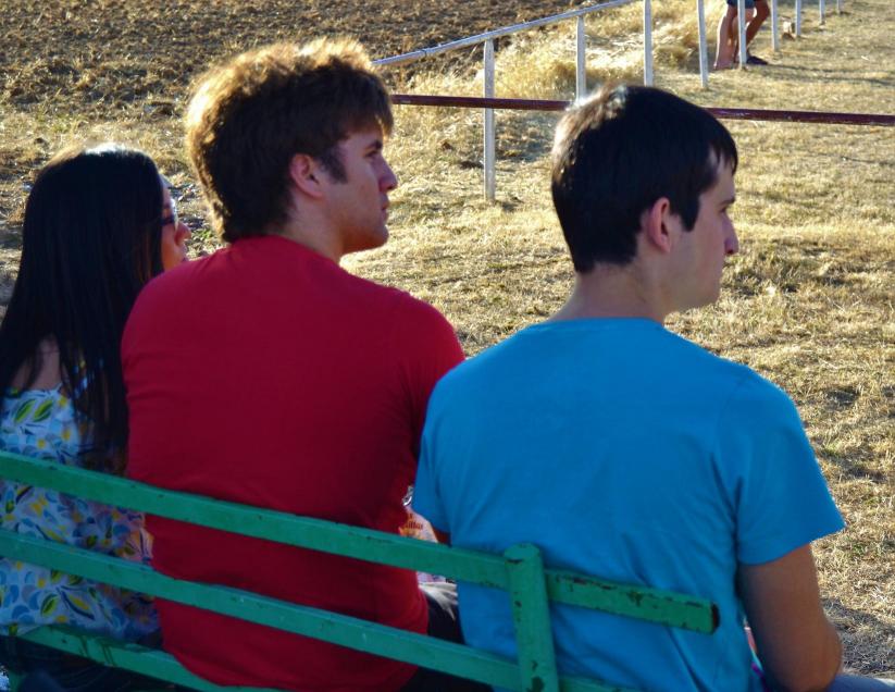 por la espalda,