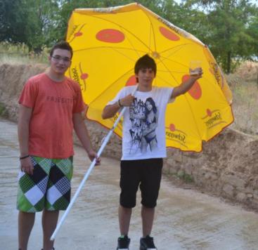 con la sombrilla a cuestas,