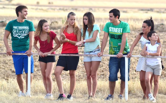 cuatro chicas y dos chicos,