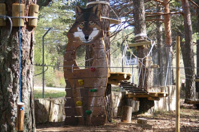 Un lobo en el parque de aventura,