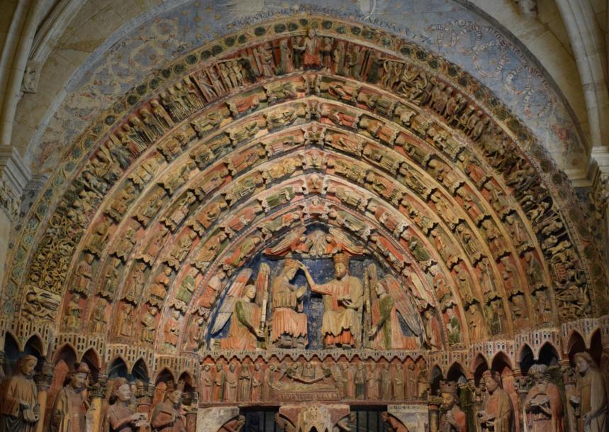 Tímpano del portón de la Majestad en la Colegiata de Santa María la Mayor,